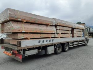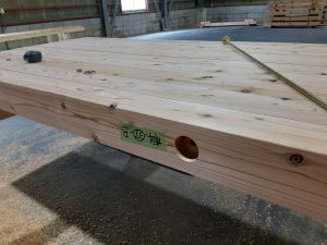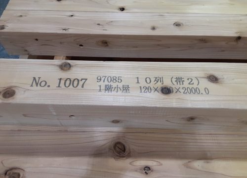 私達が加工に使用した材料は、120角の杉の定尺材が約4500本です。