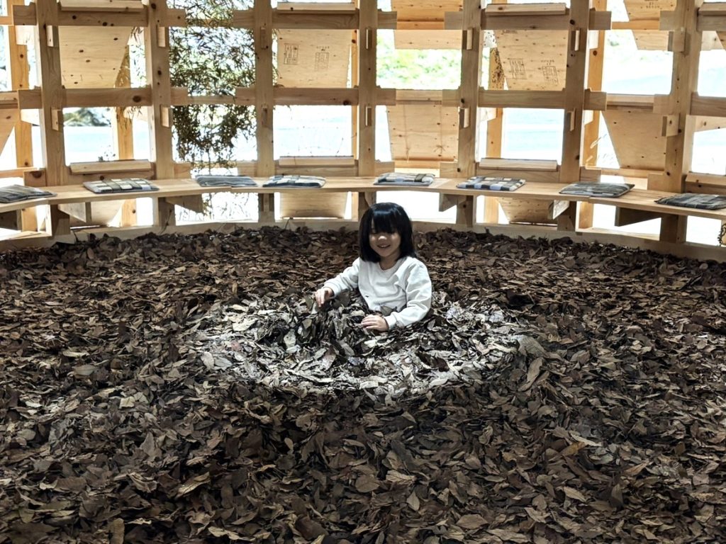 来場者は足元の落ち葉の感触や、布の揺らぎ、木の香りを通じて、