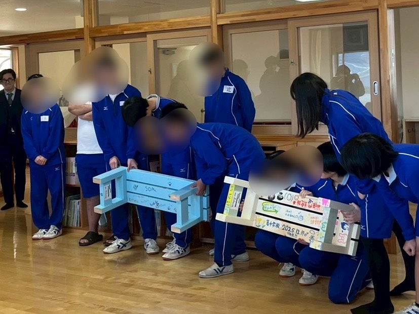 ベンチ贈呈式の時の生徒たちの顔は笑顔であふれていました。